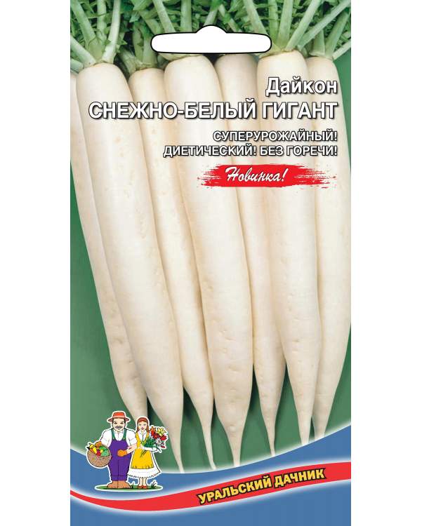 Популярный, сильнорослый гибрид, отличающийся суперурожайностью. Корнеплоды белые, выровненные, цилиндрические, длиной 50-90 см, массой 2-4 кг. Мякоть очень сочная, нежная, снежно-белая, плотной консистенции, отличного вкуса, без горечи.