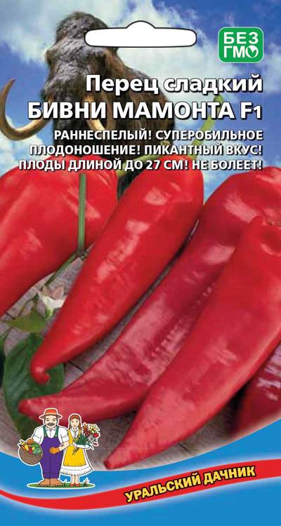 Раннеспелый, высокопродуктивный гибрид для выращивания в открытом и закрытом грунте. Растение высокорослое, высотой до 1 м. Плоды красные, хоботовидные, длиной до 27 см, массой до 200 г. Мякоть нежная, сладкая, ароматная, толщиной 5-7 мм.