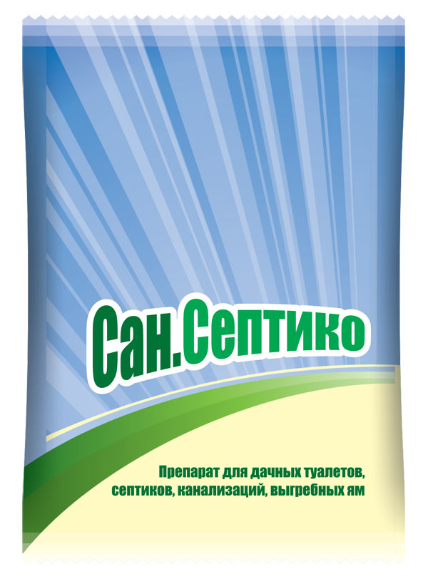 «Сан.Септико» — препарат для дачных туалетов, септиков, канализаций, выгребных ям (пакет 400 куб. см) Это биологический препарат, предназначенный для биоконверсии органи­ческих веществ (фекальных, жировых, хозяй­ственно-бытовых стоков). Состоит из живых микроорганизмов, способных перерабатывать жиры, органические отложения и естест­венные отходы;